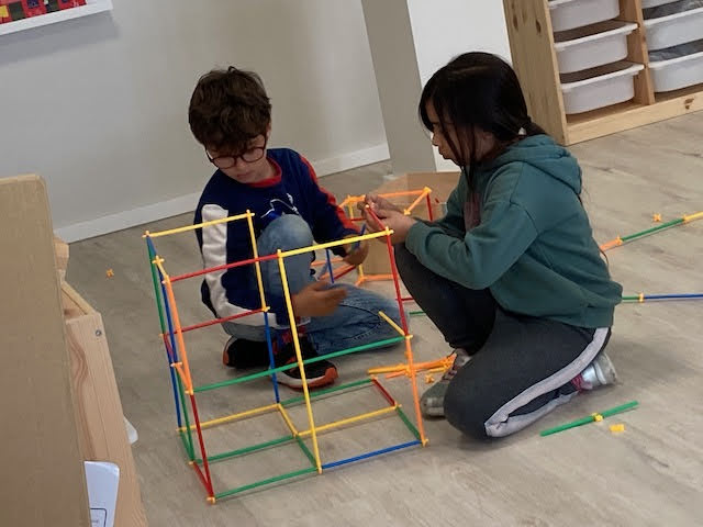 A rapazada de 1º A segue cos obradoiros creativos. Un deles, o de construción.